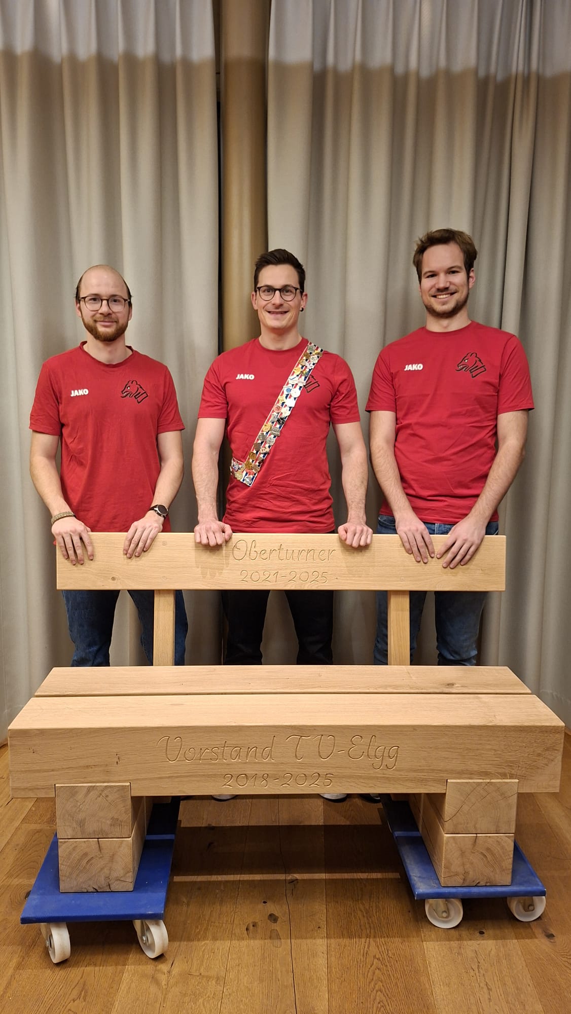 Wie sich der Turnsport wandelt, so wandelt sich auch der Vorstand. Nach 8-jähriger Tätigkeit im Vorstand, unter anderem als Oberturner, tritt Severin Wülser aus dem Vorstand aus. Dankbar für sein grosses Engagement in diesem Amt würdigt der Verein ihn mit einer Sitzbank, auf welcher er sich von diesem Amt erholen kann. Serverin bedankt sich für dieses Geschenk und betont, wieviel man in solchen Ämtern lernen kann und empfiehlt es jedem, sich einem solchen Engagement anzunehmen. In die grossen Fussstapfen von Severin tritt Fabio Sager und nimmt sich dem Amt des Oberturners an. Sein bisheriger Posten als Materialwart wird von David Ruckstuhl übernommen.