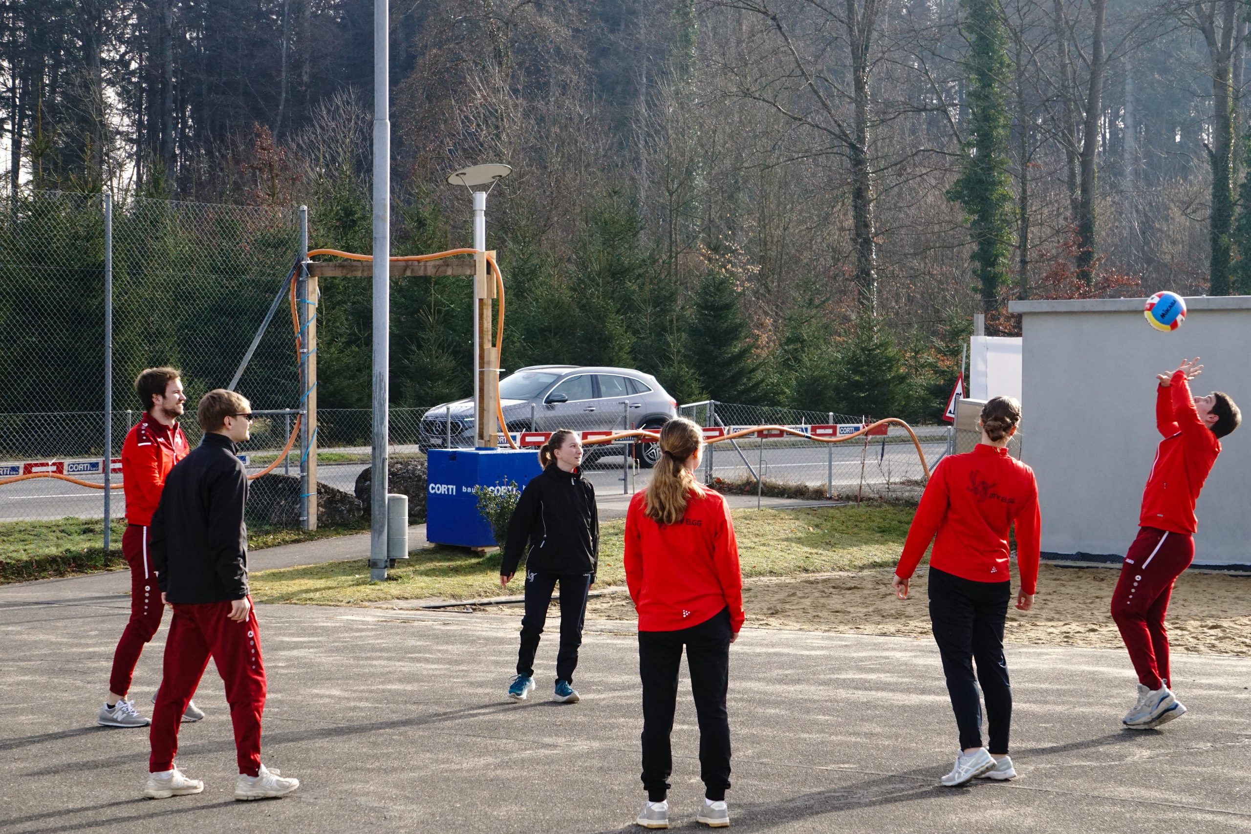 Der Wettkampftag war geschafft, und es folgte das gemeinsame Anstossen sowie das Gruppenfoto. Die Zeit bis zur Rangverkündigung wurde wieder mit Volleyballspiel überbrückt. Während die Sonne langsam verschwand und daran erinnerte, dass es doch noch März ist, packten alle wieder einige Schichten wärmerer Kleidung aus. Danach ging es gemeinsam nach Winterthur, wo wir den Tag zuerst in einer Bar und anschliessend im La Pergola zum Pizzaessen gemütlich ausklingen liessen.