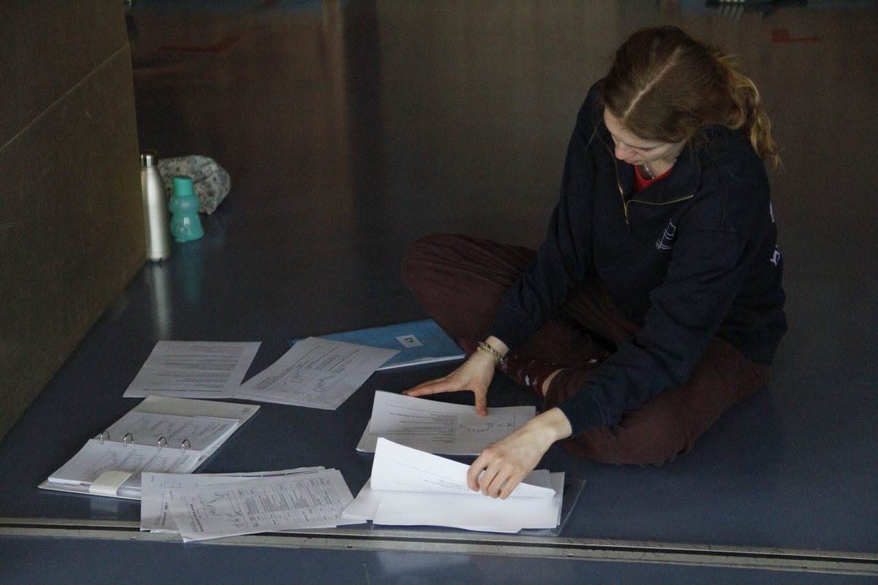Bevor der interne Wettkampf startete, blieb uns noch eine Stunde Zeit für die letzten Vorbereitungen. Diese wurde sinnvoll genutzt: Dicke Matten wurden hin und her durch die Halle geschoben (Einwärmen einmal anders 😉), es wurde gedehnt, eingesprungen, letzte Unsicherheiten geklärt, Geräte wettkampftauglich eingerichtet und natürlich durfte auch das Turndress nicht fehlen.