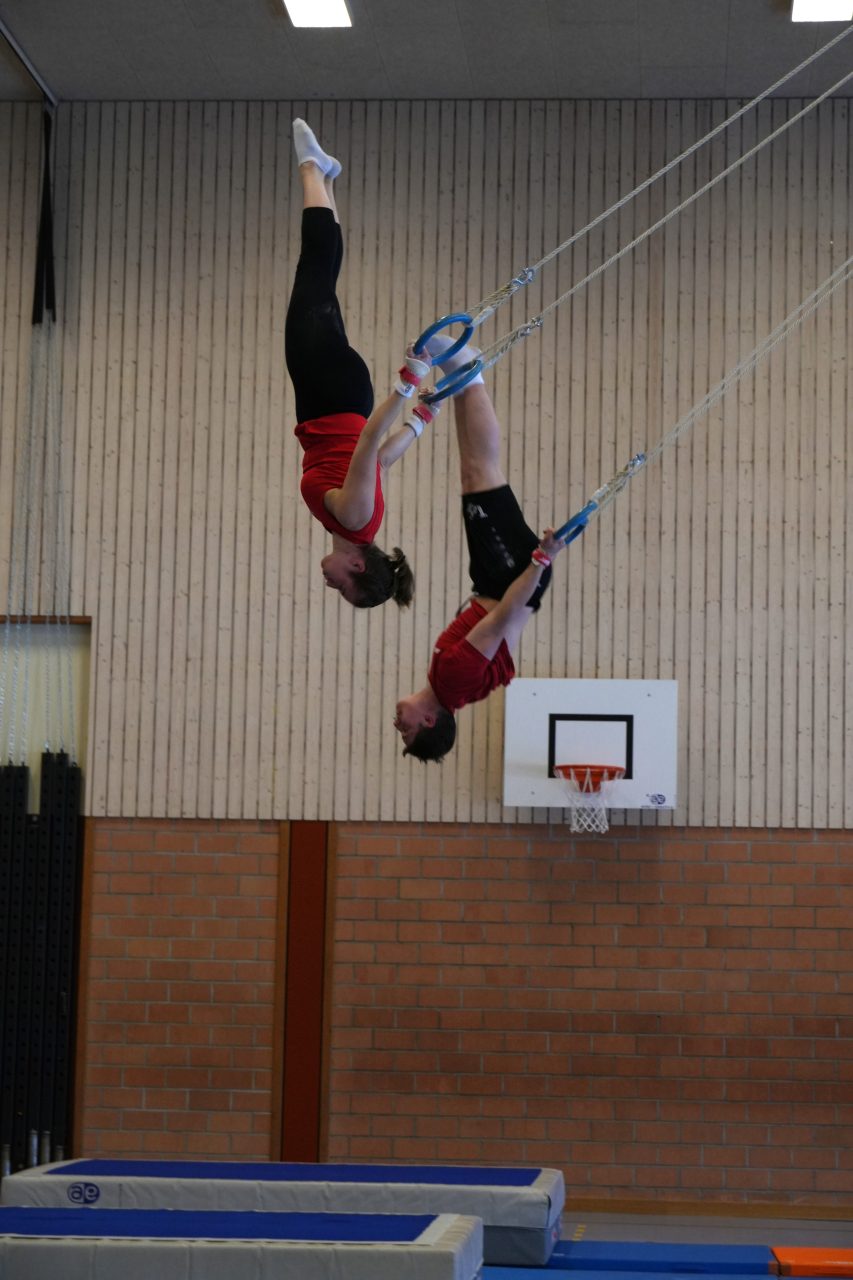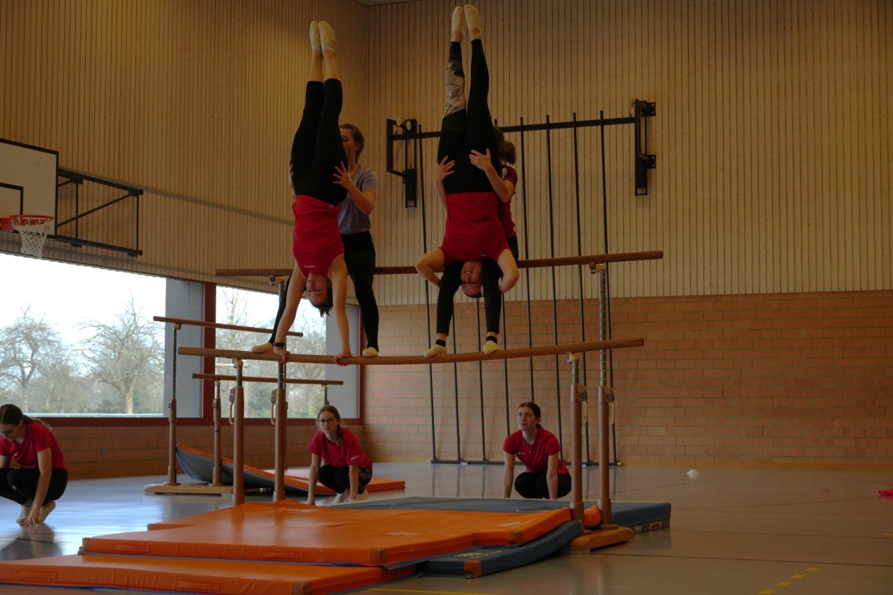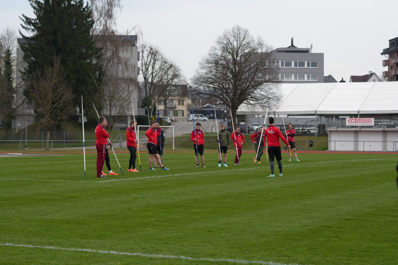 In der Halle angekommen war Schluss mit gemütlich – das Trainingsweekend läutet nämlich die Turnfestsaison ein. Also wurde schon am Morgen fleissig trainiert. Verschiedene Leichtathletikdisziplinen, Fachtest Allround, sowie die Schulstufenbarren- und die Schaukelringsektion standen auf dem Programm. «Welche Musik wurde für das neue Schaukelringprogramm ausgewählt?» Endlich erfuhren wir es – und brachten den Ohrwurm nicht mehr aus dem Kopf. Ständig hörte man von irgendwo irgendjemand die Melodie pfeifen.